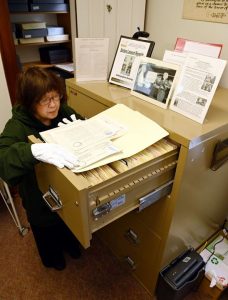 資料読み解き 運動の力に 米オハイオ州のウィルミントン大平和資料センターの1階にあるキャビネット。その引き出しに収まる「広島・長崎記念文庫」は、センター...