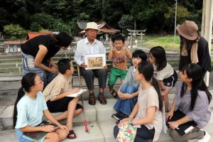 広島市佐伯区湯来町の水内地区の小学生の親子10人が、1945年8月6日に地元で原爆のきのこ雲を見た宮野節幸さん(89)=同町下=の体験談に耳を傾けた。放射性物...