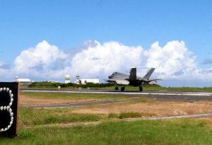 日本政府はトラブル時の緊急着陸先がない硫黄島から訓練を移すため、鹿児島県・馬毛島に自衛隊基地を建設している。しかし滑走路が使えるのは早くて2027年末の見通し。すぐに代替地にはならない。