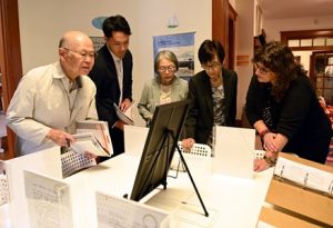 被爆2世で広島市の被爆体験伝承者の甲斐晶子さん(69)=東区=たち4人が、センターのターニャ・マウス所長(55)から「皆さんの参加も得てシンポを開き、武力戦争や核兵器の拡散を止めるエネルギーを起こしたい」と歓迎のあいさつを受けた。広島でWFCを創設し、米国に戻って平和資料センターを開いた平和活動家バーバラ・レイノルズさん(1915~90年)に関連する展示資料を見学した。
