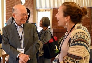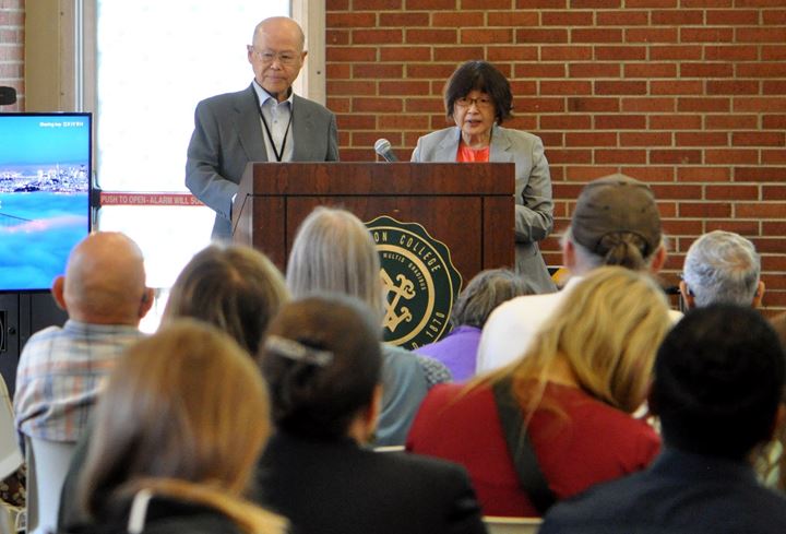 石川さんは、来場者約100人を前に「原爆の熱と爆風を想像できますか」と英語で投げかけ、爆心地から約2・4キロの広島市楠木町(現西区)で4歳の時に被爆した経験を話した。体調が優れなかった中学生の頃を「食事も睡眠も苦痛だった」と振り返り、原爆傷害調査委員会(ABCC)で検査を受けた体験なども織り交ぜた。