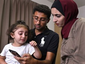 イスラエル軍とイスラム組織ハマスの戦闘開始から7日で2年。同軍の攻撃は激化の一途をたどり、パレスチナ自治区ガザ側の死者は6万6千人を超えた。飢餓も広がる現地から今夏、広島県内に移り住んだ一家3人がいる。故郷に残る親族の無事を祈り、一刻も早い和平の実現を待ち望む。(小林可奈)