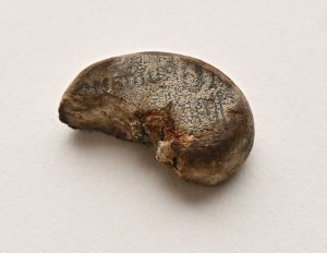 表面は黒ずみ、小石のように見える消しゴム。印字された銘柄はうっすらと残るが、読み取るのは難しい。