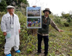 一行は、未来塾の発起人の木村紀夫さん(60)=福島県いわき市=の案内で、原発周辺の除染土の中間貯蔵施設内にある民家や熊町小などを訪ねた。木村さんは震災当時、この地に暮らし、津波で家族3人を失った。