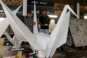 [被爆80年] 折り鶴の山車 平和願う 19日の大竹祭で披露 住民グループ製作 「惨禍忘れず継承へ」