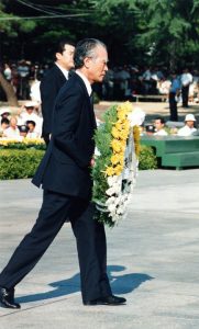 村山さんは94、95年、首相として市の平和記念式典に臨んだ。以後、歴代首相が継続的に出席している。