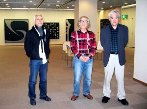 3人にはいくつかの共通点がある。今展のタイトル「消失と生成」もその一つ。不要なものをそぎ落とし純粋に「形」の表現を追究した香川さん。新聞紙で絵の具を拭き取りながら描く入野さん。僕は、具体的なものを消しながら、人間の普遍的な感情や記憶を描こうとしている。