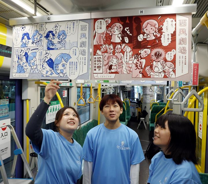 市立大生の漫画 広電車内で鑑賞 「走る美術館」展