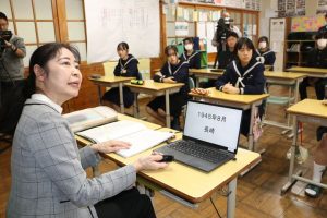 同事業での講師派遣は同中では初めて。六日市中(吉賀町)や津和野中(津和野町)で平和教育に取り組んだ山本悦生教諭の赴任を機に長崎市に依頼した。岡崎羽祢(うね)さん(15)は「今平和に暮らしていることがあらためて幸せだと感じた」と話していた。